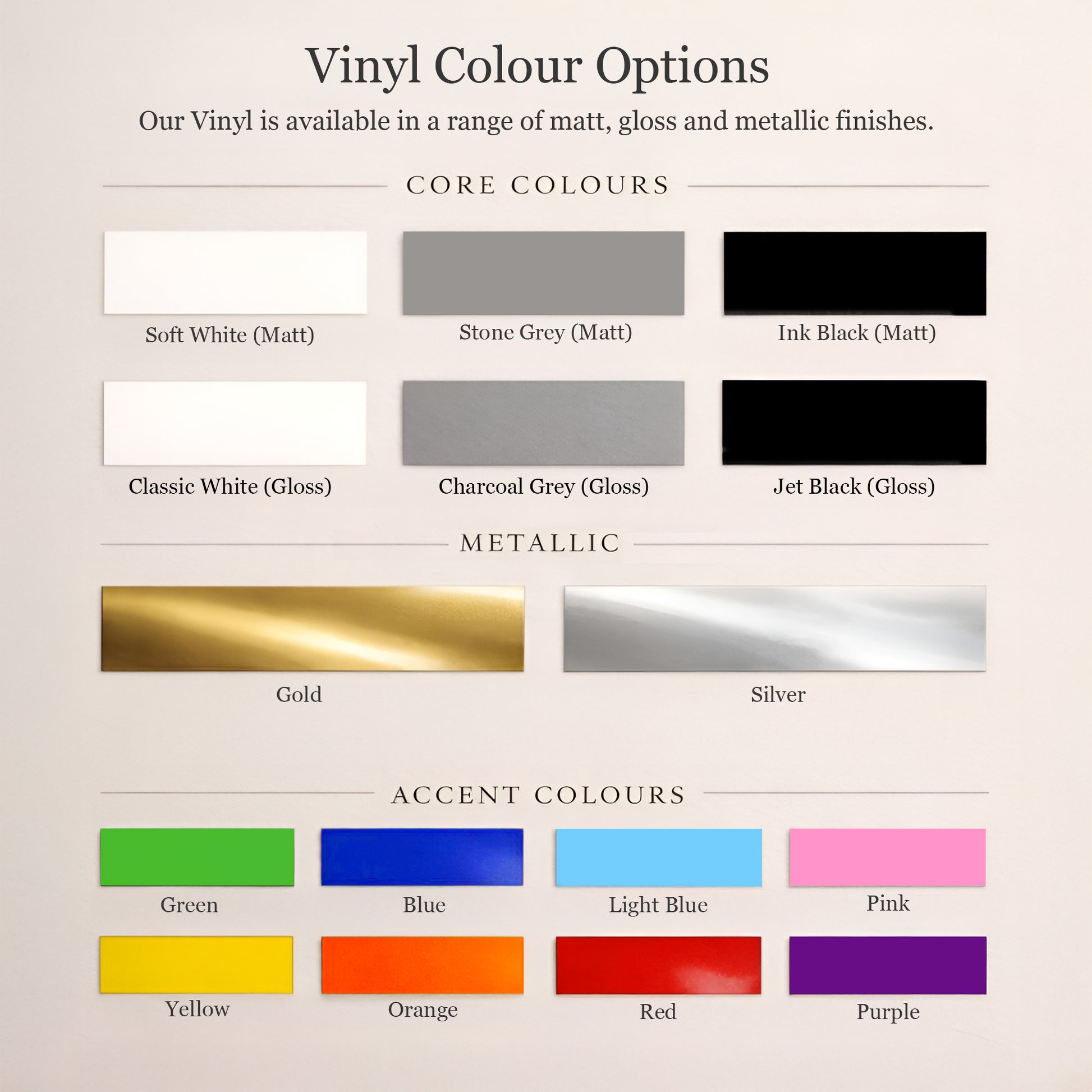 If you require a different colour from our vinyl chart, please email sales@readysetcustom.co.uk before placing your order.